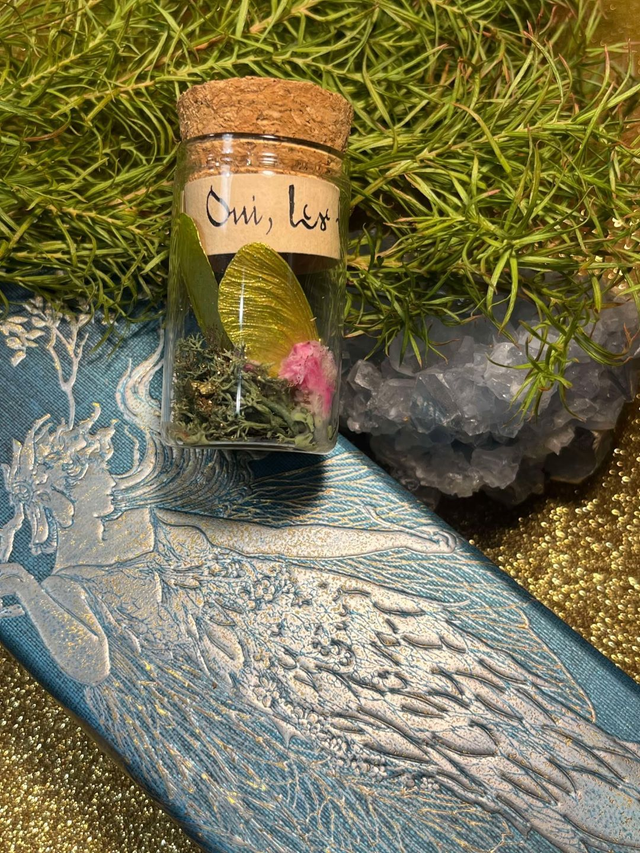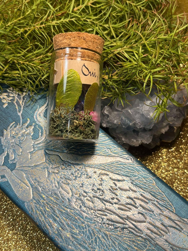 « Tout comme chaque saison où la nature se couvre nouveau manteau, les fées se parent de nouvelles ailes, délaissant les anciennes. La nuit, les lucioles et la lune les font scintiller. Peut-être en trouverez vous comme moi sur un coussin de mousse ou au pied d’un vieux chêne. Prenez en soin, elles contiennent encore la magie de la forêt✨ ».
