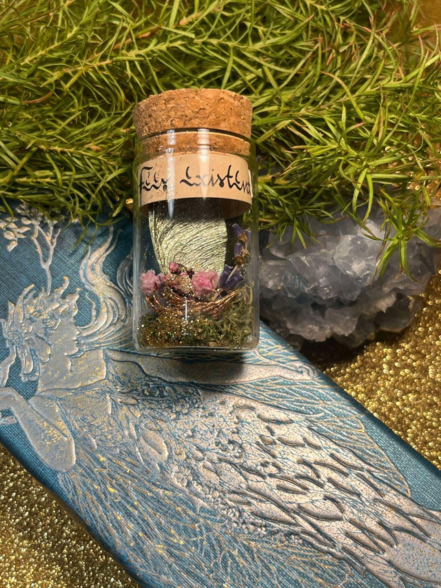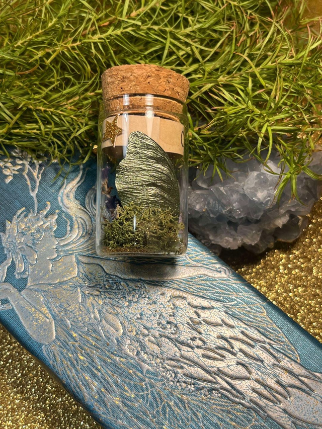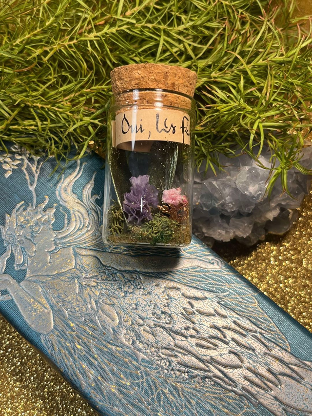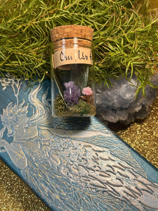 « Tout comme chaque saison où la nature se couvre nouveau manteau, les fées se parent de nouvelles ailes, délaissant les anciennes. La nuit, les lucioles et la lune les font scintiller. Peut-être en trouverez vous comme moi sur un coussin de mousse ou au pied d’un vieux chêne. Prenez en soin, elles contiennent encore la magie de la forêt✨ ».