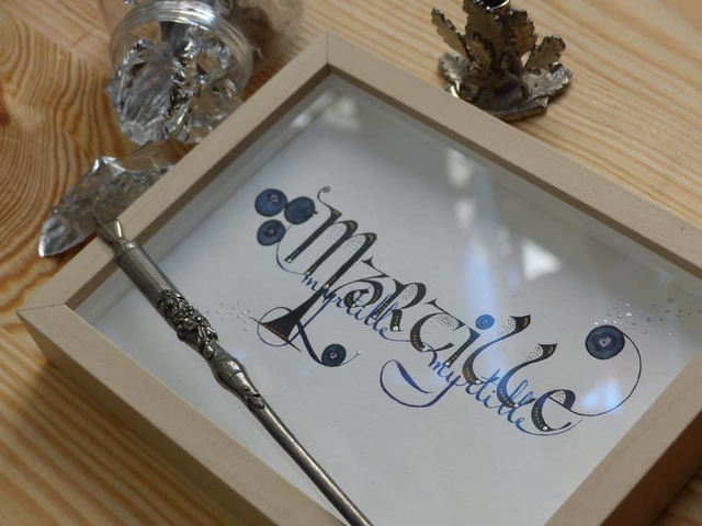 La fée de l’Atelier Valse de l’encre 🦋vous propose de réaliser ce même modèle avec le prénom de votre choix sur un papier aquarelle de 300g, dans un cadre au motif bouleau 13x18cm.