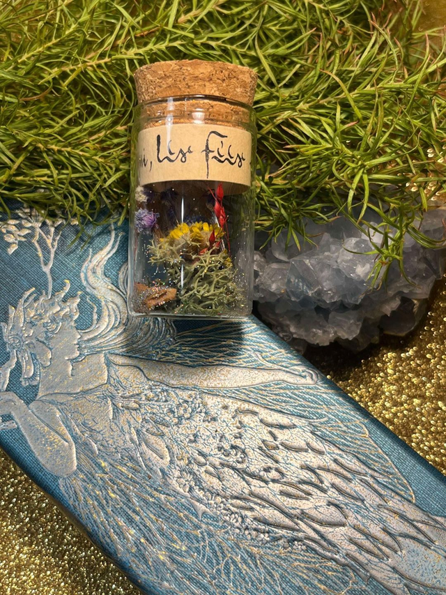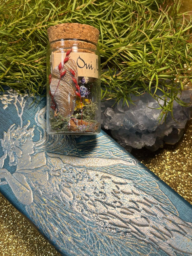 « Tout comme chaque saison où la nature se couvre nouveau manteau, les fées se parent de nouvelles ailes, délaissant les anciennes. La nuit, les lucioles et la lune les font scintiller. Peut-être en trouverez vous comme moi sur un coussin de mousse ou au pied d’un vieux chêne. Prenez en soin, elles contiennent encore la magie de la forêt✨ ».